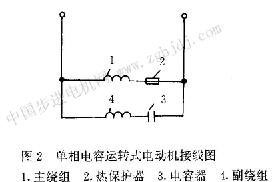 臺扇中使用****泛的電動機(jī)是單相電容運(yùn)轉(zhuǎn)式異步電動機(jī)。電動機(jī)由定子、轉(zhuǎn)子和前后端蓋等組成,其結(jié)構(gòu)如圖1所示。電容運(yùn)轉(zhuǎn)式電動機(jī)接線圖如圖2所示。