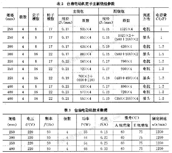 臺扇電動機(jī)定子主副繞組參數(shù)見表2,以供維修時參考。