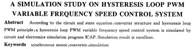 摘 要 依據(jù)同步電動(dòng)機(jī)的電路與狀態(tài)方程、變頻器的結(jié)構(gòu)以及滯環(huán)pwm原理,運(yùn)用****的電路電子仿真軟件包icap對(duì)滯環(huán)pwm變頻調(diào)速系統(tǒng)進(jìn)行了仿真研究.取得了良好的效果。