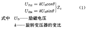 數(shù)據(jù)傳輸用旋轉(zhuǎn)變壓器的用途和作用原理與控制式自整角機相同。接線方式如圖5所示。左為旋變發(fā)送機,右為旋轉(zhuǎn)變壓器。它們的定子繞組對應(yīng)相接,發(fā)送機的轉(zhuǎn)子繞組加上交流勵磁電壓uf,旋轉(zhuǎn)變壓器的轉(zhuǎn)子繞組作輸出繞組。它們的另一轉(zhuǎn)子繞組2324和2122短路作補償用。