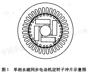 圖1為單相永磁同步電動(dòng)機(jī)的模型,其轉(zhuǎn)子為并聯(lián)磁路結(jié)構(gòu)。優(yōu)點(diǎn)是,每極磁通由兩塊永磁體并聯(lián)提供,可產(chǎn)生較大的氣隙磁密,還可充分利用空間放置永磁體
