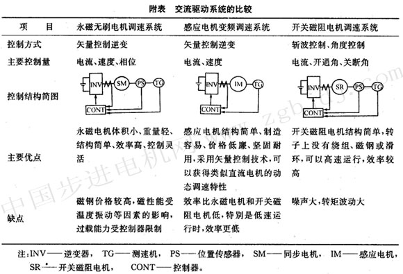 目前在電動(dòng)汽車中應(yīng)用的幾種交流驅(qū)動(dòng)系統(tǒng)各有千秋,如附表所示。