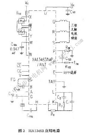 微機(jī)的fdd和hdd系統(tǒng)的主軸電動(dòng)機(jī)都是使用三相無(wú)刷直流電動(dòng)機(jī)驅(qū)動(dòng),但使用的驅(qū)動(dòng)集成電路型號(hào)并不相同。由于可供選用的集成電路型號(hào)較多,僅以其中一種型號(hào)ha13483amp/ant為例作一介紹。