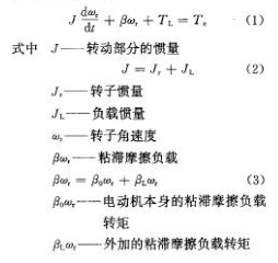 與電動機的角速度成正比變化的負載轉矩稱為粘滯摩擦負載,沒有外加的粘滯摩擦負載時,電動機本身不是一個理想的機械系統(tǒng),存在著不大的阻力轉矩,其中包含小的庫侖摩擦轉矩及小的粘滯摩擦負載轉矩。電動機的運動方程式為: