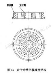 凸模固定采用壓板式,便于更換和維修。凹模采用鑲拼結(jié)構(gòu),用圓柱銷定位,確保精度,如圖24所示。