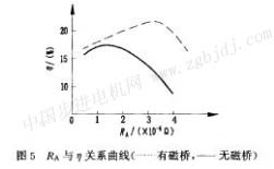 磁橋能使起動轉(zhuǎn)矩有所增加,怎樣選擇適當(dāng)?shù)淖愦,使性能較好論述不多,這里計(jì)算了不同磁橋尺寸和不同磁橋磁密情況,ki表示磁橋?qū)挾扰c極尖寬度的比值,ki =bj/br,6j為磁橋?qū)挾,br為極尖寬度,bj表示磁橋磁罩極電動機(jī)的計(jì)算與性能分析