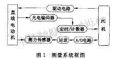 測量系統(tǒng)主要由直線電動(dòng)機(jī)驅(qū)動(dòng)電路、光電編碼器、定時(shí)/計(jì)數(shù)器電路、測力傳感器、a/d電路和pc機(jī)組成,框圖如圖l所示。