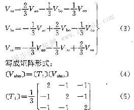 [T1]為聯(lián)系電動(dòng)機(jī)相電壓與逆變橋口、b、c三點(diǎn)電壓之間的轉(zhuǎn)換矩陣,因此,如果知道了逆變橋上a、b、c三點(diǎn)對(duì)地電壓,通過[T1]即可求得電動(dòng)機(jī)的相電壓。