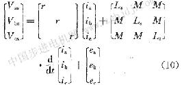根據(jù)電機(jī)的一般理論可以寫出永磁無刷伺服電動(dòng)機(jī)的系統(tǒng)方程(參見圖1):