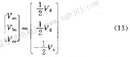 代入式(1),整理后可以得出電動(dòng)機(jī)相電壓與逆變橋a、b、c三點(diǎn)對(duì)地電壓之間有: