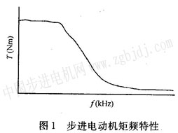混合式步進(jìn)電機(jī)的典型運(yùn)行矩頻特性如圖1所示。圖1表明,在低頻段(一般2khz左右),混合式電機(jī)有較高的輸出力矩,且矩頻特性較硬。當(dāng)頻率大于2khz后,輸出力矩隨頻率的增高快速下降。