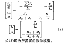 kt和kt分別為電動機的反電勢常數(shù)和力矩常數(shù)。在mlvs單位制中將式(3)、(1)和(5)代入式(i)和(2).則有