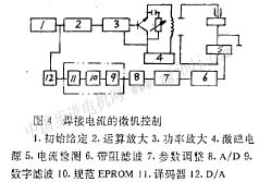 微機(jī)控制,如圖d所示。圖中表明,焊接電流經(jīng)電流的傳感器采樣.將信號(hào)送入有源帶阻濾波器,參數(shù)系統(tǒng)調(diào)整電路.通過模數(shù)轉(zhuǎn)換后進(jìn)入微波器,參數(shù)系統(tǒng)調(diào)整電路,通過模數(shù)轉(zhuǎn)換后進(jìn)入微機(jī),再經(jīng)數(shù)學(xué)濾波處理后與標(biāo)準(zhǔn)給定值進(jìn)行比較。由pid數(shù)/模轉(zhuǎn)換電路將控制量送入運(yùn)算放大、功率放大電路,最終控制調(diào)流電路中大功率三極管,實(shí)現(xiàn)對(duì)焊接電流的控制。