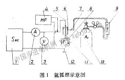 圖1表示直流氬弧焊的示意圖,項(xiàng)1為外特性(伏安特性)可控的直流電源,它是帶磁放大器的硅二級管三相橋式整流半自動直流焊接電源;2、3為監(jiān)測用的直流電流電壓表;4為用以引燃電弧的高頻振蕩器,高頻電流在電極與工件間高頻放電接通焊接回路,起弧后切斷高頻電源;5 為焊圖1氪弧焊示意圖槍中心的鎢桿電極,接負(fù)極,根據(jù)焊接時工作電流大小選擇不同粗細(xì),電極端部需磨成一定形狀和角度;6為用來夾持鎢電極的焊槍,中間通以氬氣流,保護(hù)熔池及其附近母材免受空氣侵襲,并保證電弧在氬氣流中穩(wěn)定燃燒;7為電極,與工件間產(chǎn)生弧光放電,稱為電;8 為工件,接正極,這種焊接方法稱為“正極性焊接”;9為浮子式流量計(jì),用以監(jiān)控通入焊槍的氬氣流量;10為保護(hù)氣體氬氣瓶,****壓強(qiáng)為150kg/cnr (1500mpa)根據(jù)標(biāo)準(zhǔn)應(yīng)外涂灰漆以區(qū)別于其他氣瓶,11為氬氣流;12為接地線。