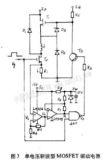 針對傳統(tǒng)電源存在的問題,對圖l所示驅(qū)動電路加以改進(jìn),研制出圖3所示單電壓斬波型驅(qū)動電源。