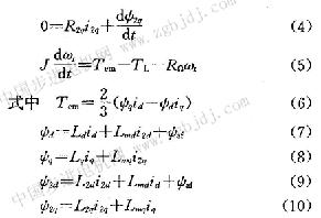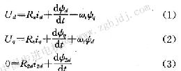 稀土水磁同步電動機在動忑運行時數(shù)學模型可由由dqo坐標系下的微分方程式表示[1]: