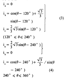 從圖2可看出,當(dāng)三相步進(jìn)電動(dòng)機(jī)工作手單三拍、雙三拍、三一六拍等任意一種步進(jìn)運(yùn)行方式時(shí),其相電流值僅僅是電流波形上的特殊點(diǎn),如圖2中的pl,p2 p3,p4…。它們?cè)谝粋(gè)周期內(nèi)分別位于0度,60度,120度.180度.240度圓周角上,其幅值等于一個(gè)單位即步進(jìn)方式運(yùn)行時(shí),步進(jìn)電機(jī)相電流的額定值。同時(shí)還可看出,相電流的每個(gè)周期,相當(dāng)于步進(jìn)電機(jī)步進(jìn)方式運(yùn)行時(shí),三一六制的六步,或單三拍的蘭步。換言之,如bf110型步進(jìn)電動(dòng)機(jī)。上述雙峰曲線每80個(gè)周期,可使它旋轉(zhuǎn)一圈。