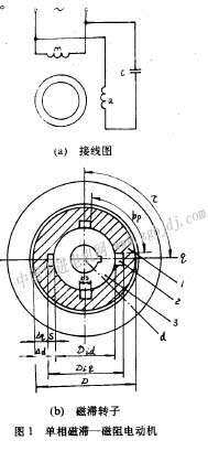 均勻氣隙的單相磁滯一磁阻電動(dòng)機(jī)的單相磁滯一磁阻電動(dòng)機(jī)的穩(wěn)態(tài)特性原理線路和轉(zhuǎn)子結(jié)構(gòu)示意圖如圖1所示。定子上有在空間正交的主、副二繞組ma,副繞組電路串接電容以獲得圓形磁場(chǎng);轉(zhuǎn)子磁滯環(huán)1內(nèi)壁開有4個(gè)對(duì)稱的磁阻槽2,使其形成一個(gè)4極轉(zhuǎn)子,這樣,氣隙仍保持均勻不變。磁滯環(huán)套在非磁性軸套3的外面。