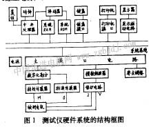 測(cè)試儀的硬件系統(tǒng)結(jié)構(gòu)框圖如圖1所示。測(cè)試儀的硬件系統(tǒng)構(gòu)成主要有