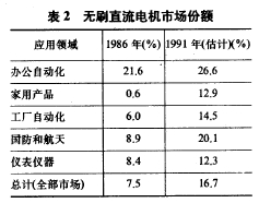 從表中可知,無刷直流電機將在各個運動控制市場占有較大的份額。