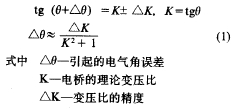 根據(jù)gb10241的規(guī)定,安裝誤差為不大雨30,返零誤差規(guī)定為不大于30度角分度裝置的誤差一般為5.四臂函數(shù)電橋的分辨率應(yīng)為10 ,根據(jù)式(1)計(jì)算,其引起的電氣角誤差為0.2。相敏指零儀的分辨率一般為0.5mv,其對(duì)應(yīng)的角度誤差可根據(jù)比例電壓梯度法公式導(dǎo)出,即