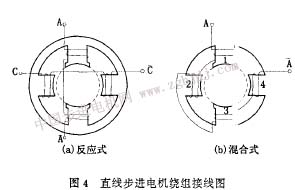 反應(yīng)式直線步進(jìn)電機各組繞組的接線如圖4a所示,其動作原理是通過使通電相極下的磁導(dǎo)****而產(chǎn)生運動。