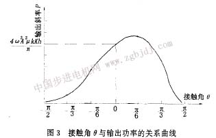 由圖2可知,電機(jī)的水平推力隨接觸角的增大而減小,而電機(jī)的轉(zhuǎn)速隨接觸角的增大而增大。在外部條件確定后,總是希望電機(jī)有較大的輸出功率。功率p=f.v,由圖2可知,f、y隨θ的變化是反方向的。所以,要取得****的功率輸出,必須選擇好合適的接觸角。由式(2)和(3)可得: