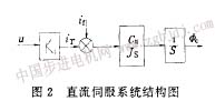 對于直流伺服系統(tǒng),若有電流環(huán),對系統(tǒng)作適當(dāng)?shù)暮喕徒,一般為三階系統(tǒng)。當(dāng)電流環(huán)設(shè)計得使其響應(yīng)速度很快時,則可把電流環(huán)看成是一個比例環(huán)節(jié),從而將系統(tǒng)降為二階系統(tǒng)[3],其結(jié)構(gòu)如圖2所示。