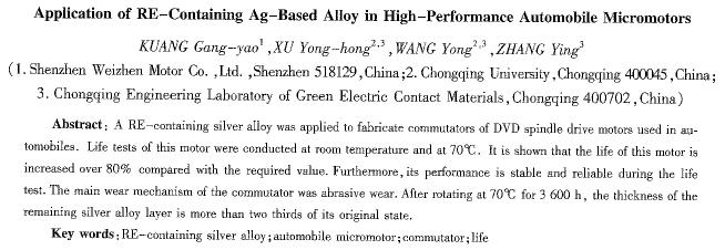 利用稀土銀合金開(kāi)發(fā)高性能車(chē)用微電機(jī)