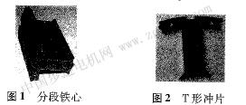 鉸鏈式無刷電動機定子鐵心是由與槽數(shù)相同的分段鐵心拼接組合而成,類似于整體式結構在圓周上分割了相應的鐵心塊,具體如圖1所示。而分塊的鐵心則由一定數(shù)量的T形沖片組成,T形沖片包括了分段的齒部和軛部,如圖2所示。