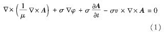 感應(yīng)線圈炮工作過程中產(chǎn)生的時(shí)變電磁場(chǎng)滿足MaxwelJ方程組,在忽略位移電流的情況下,用A-φ法表示電樞渦流場(chǎng)的電磁位控制方程為[8]: