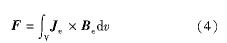 電樞受力的大小取決于電樞磁場(chǎng)和渦流的大小及分布,根據(jù)安培力公式,作用在電樞體上任一單元體e的電磁力工的表達(dá)式為: