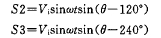 經(jīng)scott變壓器轉(zhuǎn)換成口角正余弦形式輸出,即
