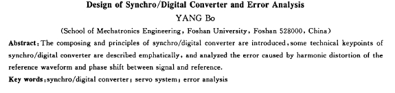 關(guān)鍵詞:自整角機(jī)/數(shù)字轉(zhuǎn)換器.伺服系統(tǒng)i誤差分析
