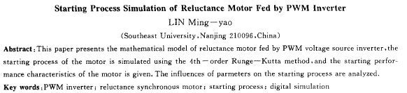 關(guān)鍵詞:pwm逆變器;磁阻同步電動機(jī);起動過程;數(shù)字仿真