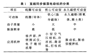 直線同步振蕩電動機可分為線圈可動型,鐵心可動型和****磁鐵可動型三類,表1就是這3種分類直線振動電動機的大致情況。