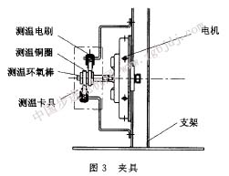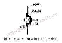 第二個問題較復(fù)雜,首先要將印制繞組電機(jī)軸做成空心的,并且伸出印制繞組電機(jī)后蓋約50mm(這要求印制繞組電機(jī)后蓋要沖+l以便軸穿出),這樣測溫?zé)犭娕伎梢酝ㄟ^軸的中心孔穿出印制繞組電機(jī)外,如圖2所示;