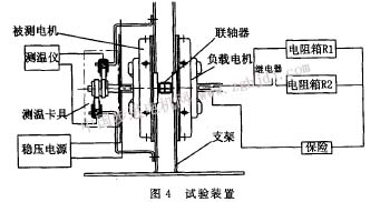 以128sn02 -2qhii電動自行車用印制繞組電機(jī)的溫升試驗為例,說明本溫升實驗的方法及步驟,整個試驗裝置如圖4所示。