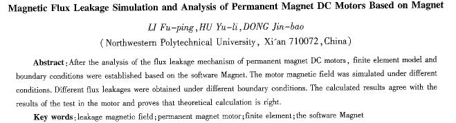 關(guān)鍵詞:漏磁場(chǎng);永磁直流電動(dòng)機(jī);有限元;Magnet軟件