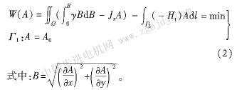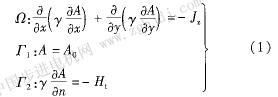 式中:y為磁阻率,y=;1/μp為磁導(dǎo)率;A為磁矢量,因?yàn)锳只有z軸分量,故可寫成標(biāo)量形式;Jz為源電流密度;H1為磁場(chǎng)強(qiáng)度的切向分量;T1為第一類邊界條件;T2為第二類邊界條件。