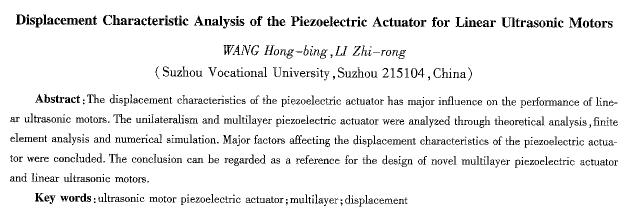關鍵詞:超聲波電動機;壓電作動器;疊堆;位移