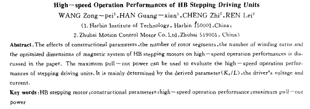 關鍵詞:混合式步進電動機;結構參數(shù);高速運行性能;****牽出功率