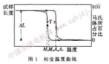 sma是一種特殊的功能材料,顧名思義,它具基金項目:國家自然科學基金資助項目(59877004)有記憶形狀的能力。其物理本質(zhì)是合金內(nèi)部的相變結(jié)果。材料制作過程中,通過特定的冷熱處理,記憶一定的形狀。低溫時,材料的屈服強度較底,施加外加應(yīng)力,產(chǎn)生塑性形變,去除應(yīng)力,變形亦保留。升高溫度,合金發(fā)生相變,塑性形變消失,恢復到它記憶的形狀。圖1是sma試樣長度及馬氏體所占百分比與溫度的關(guān)系曲線2。其中m、mf為馬氏體相變的開始和結(jié)束時的溫度,a。、af為逆相變的起始和結(jié)束溫度,人們通常用相變溫度af表征合金的特性。