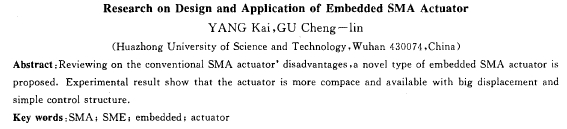 摘 要:分析了傳統(tǒng)sma電機的不足,并在此基礎(chǔ)上提出了一種新型的內(nèi)嵌式電機結(jié)構(gòu)。研制的樣機具有重鞋輕、輸出位移大、結(jié)構(gòu)緊湊、控制簡單等諸多優(yōu)點。