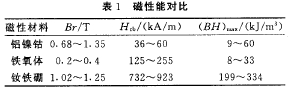 摩托車起動機(jī)系直流永磁微電機(jī),國外常用高性能鍶鈣鐵氧體作為其磁瓦材料。國內(nèi)的鐵氧體材料制造的磁瓦產(chǎn)品不穩(wěn)定,尺寸一致性差,產(chǎn)品質(zhì)量無法與國外高檔產(chǎn)品抗衡。筆者曾試用鋁鎳鈷磁性材料作起動機(jī)磁瓦,但矯頑力h。較低(鋁鎳鈷磁性材料的矯頑力約為59. 7ka/m,僅為日本起動機(jī)磁瓦的1/3)。該材料磁瓦在起動機(jī)起動過程中產(chǎn)生的沖擊電流形成電樞反應(yīng)的去磁作用強(qiáng),要求磁瓦厚度比鐵氧體磁瓦大數(shù)倍,而電機(jī)幾何空間無法滿足這一要求。釹鐵硼永磁材料磁性能遠(yuǎn)比鋁鎳鈷、鐵氧體要好。3種材料性能對比見表1。