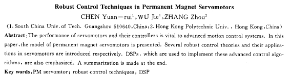 關(guān)鍵詞:永磁伺服電機(jī);魯棒控制技術(shù);數(shù)字信號(hào)處理器