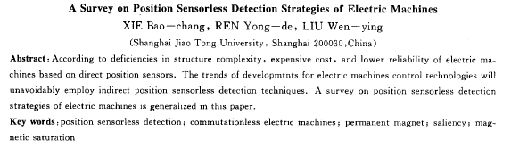 關鍵詞:無傳感器位置檢測;無換向器電機;永磁;凸性;磁飽和