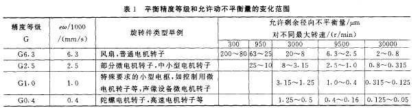 根據(jù)微電機不同的工作要求和轉(zhuǎn)速值,可以iso標準作為選擇平衡精度的參考,見表1。