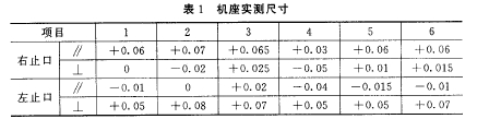 由于機座鑄造時左右端冷卻速度不均,地腳對機座的殘余應(yīng)力為左壓右拉,在機加工后,機殼強度而被削弱,破壞了應(yīng)力平衡,故機座右端在地腳壓應(yīng)力不變形,左端在拉應(yīng)力不變形,結(jié)果左端平行地腳方向的趨小,垂直方向趨大,右端平行地腳方向的趨大,垂直方向趨小。如果對機座毛坯進行足夠的時效處理,消除了鑄造應(yīng)力,情況會明顯好轉(zhuǎn)。