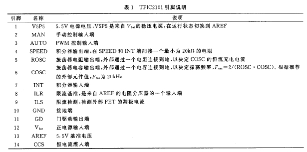 tpic2101有dip和so兩種封裝,14個引腳,其引腳說明見表1。